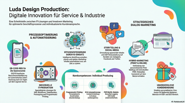 Als Versuchskaninchen musste in diesem Fall meine Website herhalten. Diese wurde als Informationsquelle definiert. NotebookLM (bei Benutzung eines Gemini + Accounts) erstellte dabei eine PDF-Präsentation und zwei Info-Grafiken über die Webpräsenz. Allerdings nicht fehlerfrei! Die Struktur und die Grafiken passen so einigermaßen zusammen. Es wundert allerdings, dass Notebook/Gemini immer noch Rechtschreibfehler in die Texte reinhaut. Wenn man also schnell etwas gestalten will, ist dies eine Variante Zeit zu sparen, allerdings sollte man die Inhalte gründlichst vor Weitergabe überprüfen.